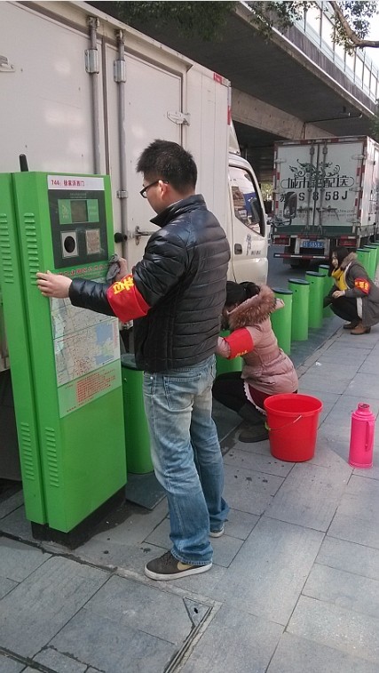 連日的陰雨天氣,使得公共自行車(chē)上沾滿(mǎn)了泥濘和污漬,社區(qū)組織志愿者為周邊的公共自行車(chē)進(jìn)行擦洗,帶上提早準(zhǔn)備好的水桶和抹布,用自己的實(shí)際行動(dòng)對(duì)每一輛公共自行車(chē)進(jìn)行了擦洗。認(rèn)真,是每位志愿者的態(tài)度;細(xì)致,是每位志愿者的作風(fēng)。志愿者們不但為每一輛車(chē)子進(jìn)行了擦洗,還向過(guò)往的行人提倡“綠色出行”的環(huán)保理念。