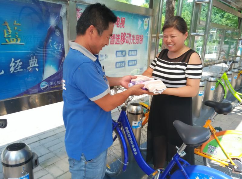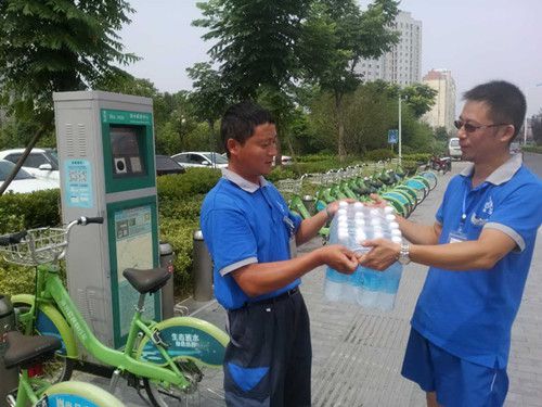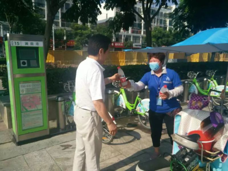 在7月27日下午最熱的時(shí)間段,漣水公共自行車管理中心負(fù)責(zé)人前往站點(diǎn),為那些堅(jiān)守在一線的巡檢師傅們送上一片清涼。