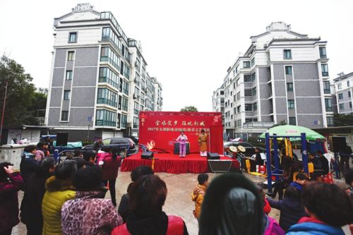 核心提示:昨天下午,雖然室外天氣陰冷,但香江花園熱鬧非凡,滬劇《洞房》、越劇《借紅燈》、錫劇《雙推磨》等耳熟能詳、喜聞樂(lè)見(jiàn)的經(jīng)典名劇精彩選段輪番上演,高潮迭起,讓小區(qū)里的居民大飽眼福、耳福,直呼過(guò)癮,現(xiàn)場(chǎng)不時(shí)響起陣陣掌聲和歡呼聲。今年71歲的胡奶奶坐在前面,一邊聽(tīng)一邊跟著舞臺(tái)上的演員唱,她樂(lè)呵呵地告訴記者,她記得小時(shí)候過(guò)年除了穿新衣服,有好吃的,最開(kāi)心的就是全家人一起扛著凳子去看戲,“現(xiàn)在我已經(jīng)五六十年沒(méi)有看過(guò)戲了,今天送戲到家門口,真是開(kāi)心?!?/p>