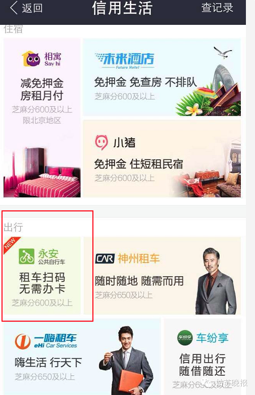 咱們總會(huì)有這種體驗(yàn) ↓↓↓ 不到一站的距離,可是走起來又好遠(yuǎn)。就算坐公交做地鐵,還要折回去才到目的地。 這時(shí)候,路邊的綠色自行車就得瑟的看著你,“來找我啊來找我??!” 可是一摸口袋,木有卡! 呵呵噠,從今天起,這些得瑟的綠色自行車請(qǐng)收起你們嘲笑的嘴臉,就算蘇州人沒辦自行車卡,或者沒帶卡,也可以想騎就騎啦~ 只需要一個(gè)條件: 芝麻信用卡超過600分 芝麻信用分,咱們辦公室平時(shí)幾乎不用支付寶,信用分都有671! 最近,公共自行車租車點(diǎn)的鎖車樁上多了一個(gè)二維碼,上面還有租車點(diǎn)的名稱、編號(hào)和鎖車樁的編號(hào)。 使用方法在此: 1、打開支付寶app,在右下角點(diǎn)擊“芝麻信用分” 2、點(diǎn)擊右下角的信用生活 3、在“信用生活”里找到“永安公共自行車” 4、然后根據(jù)提示綁定支付寶賬戶就可以掃碼租車?yán)?/p>