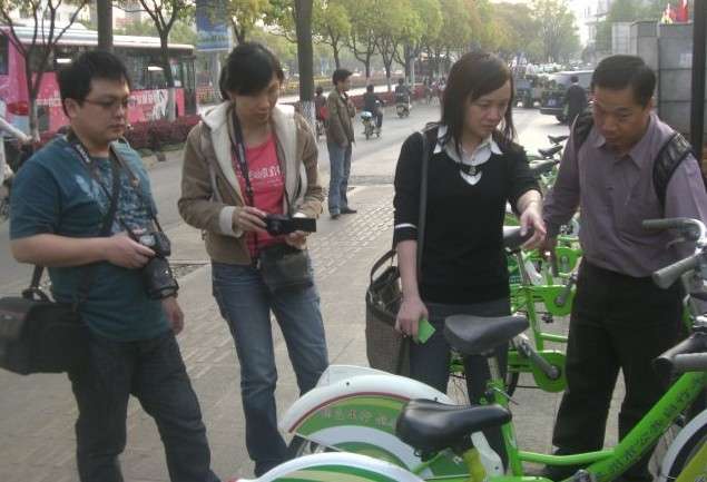臺(tái)北市考察人員參觀蘇州公共自行車站點(diǎn)