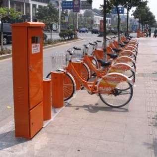 4月25日是值得紀念的一天,常熟市首批公共自行車亮相在常熟市街頭。圖為虞山公園公共自行車站點,已開始上車準備運營(具體開通時間請關注常熟公共自行車網(wǎng)站公告)