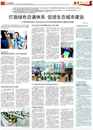打造綠色交通體系促進(jìn)生態(tài)城市建設(shè)—訪常州市政協(xié)委員常州永安公共自行車系統(tǒng)股份有限公司董事長(zhǎng)孫繼勝