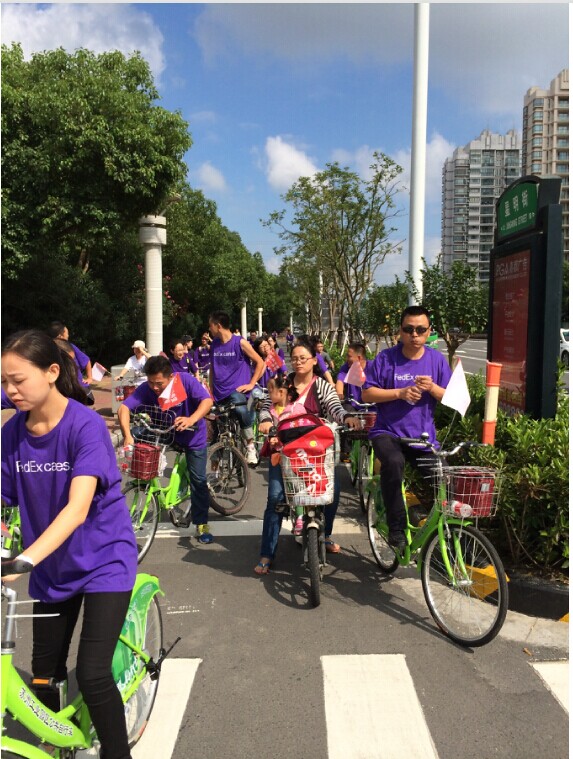 9月21日,蘇州聯(lián)邦快遞圍繞“關(guān)愛”的主題舉辦了一次“愛我城市,保護環(huán)境”的綠色騎行活動。在城市污染日趨嚴重的今天,志愿者們盡微薄之力呼吁市民愛護生存環(huán)境,保護我們的家園;同時也給高溫下辛勤工作的城市環(huán)境守護者送去一份關(guān)愛和清涼。