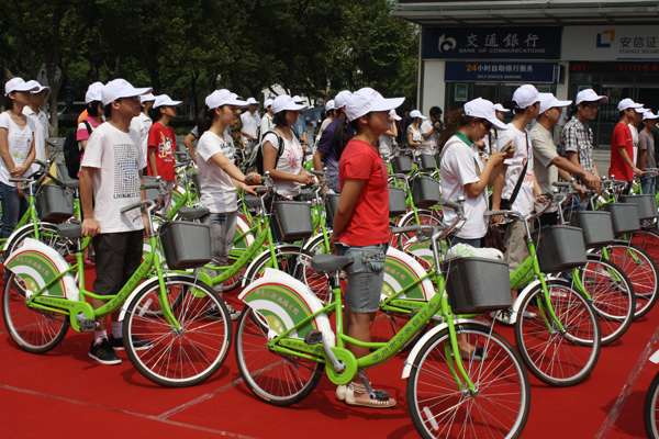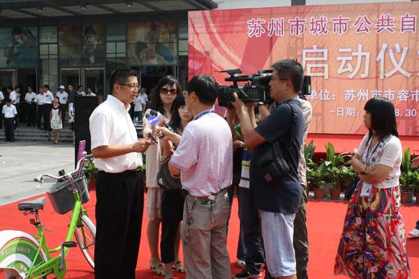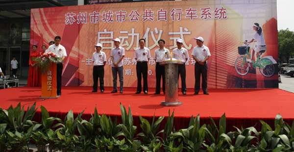 2010年8月30日,在蘇州金逸電影院廣場舉行了啟動儀式。廣場上集中停放著60輛嶄新的“綠色”公共自行車,在正式啟動之后,志愿者們做了首次體驗,紛紛騎上車,將車停放回各個停車點。首批投入200輛自行車,在主干道人民路沿線設(shè)11個站點。市民和游客分別繳納200元、300元押金即可辦理租車卡,在任一站點可刷卡租車,通借通還。市民卡第一小時免費,之后每小時1元。每輛車使用者都有2萬元的意外傷害保險。年內(nèi),蘇州還將建成第二批站點,形成覆蓋居民區(qū)、公交站、商業(yè)街、酒店賓館、旅游景點的公共自行車網(wǎng)絡(luò)。