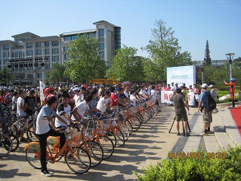 上午9點(diǎn),200多名整裝待發(fā)的自行車青年愛(ài)好者們從石梅廣場(chǎng)出發(fā),隊(duì)伍沿虞山北路、楓林路、海虞北路、海虞南路、阜湖路、環(huán)城路、方塔街一路騎行,200多輛浩浩蕩蕩的自行車形成長(zhǎng)長(zhǎng)的車龍,吸引了不少市民的目光,也成為虞城道路上一條亮麗的風(fēng)景線。 經(jīng)過(guò)近一個(gè)小時(shí)的環(huán)城騎行后,車隊(duì)回到石梅廣場(chǎng)。大家又紛紛在“關(guān)愛(ài)城市、綠色出行”的橫幅上簽名,用實(shí)際行動(dòng)支持綠色、低碳、環(huán)保的出行和生活方式。 不少參加活動(dòng)的青年告訴記者,這樣的騎行活動(dòng)不但可以增強(qiáng)身體素質(zhì),更重要的是從自身做起,踐行低碳環(huán)保生活,傳播綠色出行理念,從而喚起全社會(huì)來(lái)關(guān)愛(ài)我們的城市,保護(hù)共同的家園。市民李?。骸句浺簦何冶旧硐矚g騎自行車,現(xiàn)在組織這樣一個(gè)活動(dòng)我覺(jué)得非常好,我會(huì)積極的參加?,F(xiàn)在都提倡綠色出行,低碳環(huán)保的理念,我也會(huì)以這種理念來(lái)指導(dǎo)我的行動(dòng),比如能騎自行車就不開(kāi)車,盡量少開(kāi)車。】