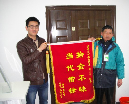 3月7日 吳中區(qū)公共自行車運(yùn)營員工梁師傅,在新蘇國際站點(diǎn)附近撿到錢包一個(gè),里面有7000多現(xiàn)金、銀行卡、身份證、市民卡等重要證件。梁師傅及時(shí)交給部門領(lǐng)導(dǎo)并把它交給派出所,在派出所工作人員的幫助下,找到了失主。失主認(rèn)領(lǐng)后非常感動(dòng)。