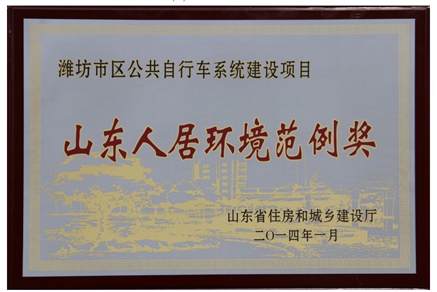 熱烈祝賀濰坊市區(qū)公共自行車系統(tǒng)建設(shè)項目獲山東人居環(huán)境范例獎!濰坊市公共自行車項目由常州永安公共自行車系統(tǒng)股份有限公司承建。