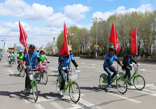 5月16日,由黑河市委統(tǒng)戰(zhàn)部、九三學社黑河市委聯(lián)合舉辦,黑龍江省騎游協(xié)會黑河分會承辦的“黑河中俄邊境騎游大會”暨全民健身自行車騎游活動在黑河市區(qū)世紀廣場拉開帷幕。本次活動使用的公共自行車堪稱活動的一大亮點,整齊劃一的公共自行車從馬路上飛馳而過,在藍天白云的映襯下顯得格外靚麗,風采無限。