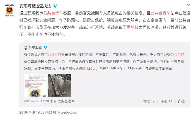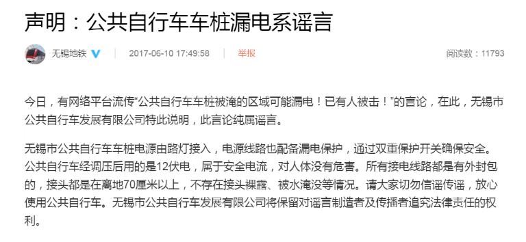 近日,全國(guó)多地迎來(lái)雨水高發(fā),多年前關(guān)于公共自行車漏電的謠言又開(kāi)始散播,該謠言已被多種官方可信渠道辟謠,請(qǐng)廣大市民不信謠、不傳謠。永安行所承建的全國(guó)250+個(gè)公共自行車城市,運(yùn)營(yíng)至今,從未出現(xiàn)一例漏電或因漏電而導(dǎo)致人員受傷情況。永安行所有公共自行車系統(tǒng)設(shè)備,均通過(guò)了極寒、高溫、高濕、高鹽等超常環(huán)境的考驗(yàn),系統(tǒng)站點(diǎn)在建設(shè)時(shí)已經(jīng)考慮到安全問(wèn)題,都安裝有漏電保護(hù)裝置,一旦發(fā)生漏電現(xiàn)象,系統(tǒng)設(shè)備將自動(dòng)斷電;公共自行車系統(tǒng)設(shè)備的輸出電壓不高于15V,屬于安全電壓范圍;系統(tǒng)軟件對(duì)每個(gè)站點(diǎn)的電壓和溫度進(jìn)行實(shí)時(shí)監(jiān)控;運(yùn)營(yíng)單位在運(yùn)營(yíng)管理中每周對(duì)系統(tǒng)設(shè)備進(jìn)行安全檢查,排除漏電隱患;一旦出現(xiàn)特殊惡劣的天氣,例如:大雨、暴雪,永安行公共自行車運(yùn)營(yíng)公司會(huì)及時(shí)關(guān)閉系統(tǒng)。 此外,運(yùn)營(yíng)公司工作人員會(huì)始終堅(jiān)守一線,排查存在安全隱患的站點(diǎn)進(jìn)行斷電處理!保障市民用車!