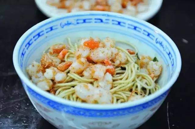 所謂三蝦面,就是把蝦子、蝦腦、蝦仁三種蝦身上最好的東西,經(jīng)過烹飪,作成澆頭,其制作過程很繁瑣,味道真是鮮得眉毛掉下來。在蘇式湯面中,三蝦面屬于比較高大上的吃法,每年夏天的時(shí)候上市,僅有限的幾個(gè)面館供應(yīng)(如裕興記),而且價(jià)格不菲。