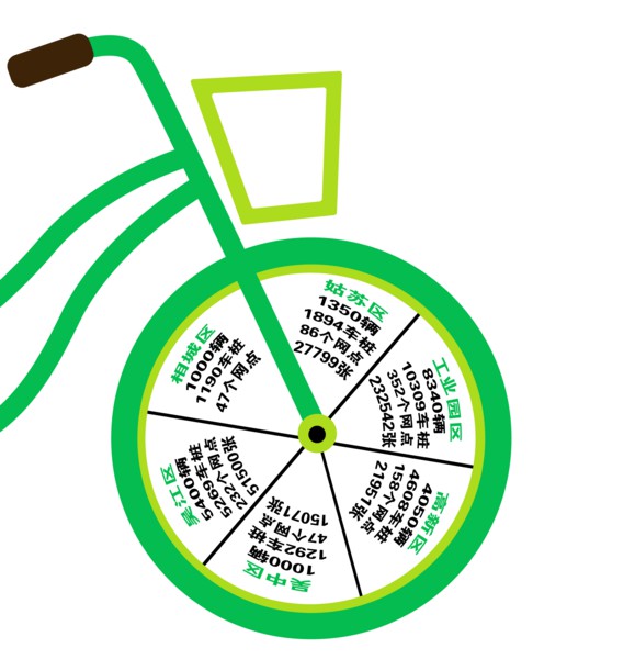 截至8月30日,姑蘇區(qū)、工業(yè)園區(qū)、高新區(qū)、吳中區(qū)、吳江區(qū)、相城區(qū)總計投入公共自行車21140輛,近35萬市民辦理了公共自行車卡。