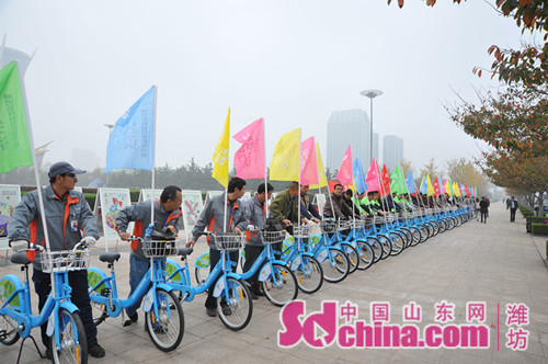 中國(guó)山東網(wǎng)濰坊頻道11月1日訊 濰坊公共自行車項(xiàng)目自去年11月1日正式運(yùn)營(yíng)以來(lái),至今已一年時(shí)間。為讓更多人選擇公共自行車出行方式,今日上午,濰坊市市政局舉行“慶祝濰坊公共自行車運(yùn)行一周年騎行活動(dòng)”,并為全市騎行數(shù)量最多和騎行時(shí)間最長(zhǎng),以及第一名辦卡的市民頒獎(jiǎng),其中騎行時(shí)間最長(zhǎng)的市民共計(jì)騎行58451分鐘,即平均每天騎行兩個(gè)半小時(shí)以上。
