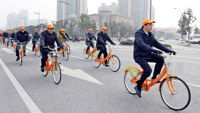 昨天上午,宜興市民期待已久的公共自行車服務系統(tǒng)正式啟用,首批1200輛公共自行車向公眾開放。市領導王中蘇、張立軍、邵亞群、王華良、何曉進出席啟用儀式,并與近百名市民代表一起從宜園騎行至團氿城市濕地公園,以低碳、環(huán)保的出行方式踐行、倡導綠色出行。