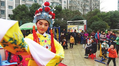 核心提示:昨天下午,雖然室外天氣陰冷,但香江花園熱鬧非凡,滬劇《洞房》、越劇《借紅燈》、錫劇《雙推磨》等耳熟能詳、喜聞樂(lè)見(jiàn)的經(jīng)典名劇精彩選段輪番上演,高潮迭起,讓小區(qū)里的居民大飽眼福、耳福,直呼過(guò)癮,現(xiàn)場(chǎng)不時(shí)響起陣陣掌聲和歡呼聲。今年71歲的胡奶奶坐在前面,一邊聽(tīng)一邊跟著舞臺(tái)上的演員唱,她樂(lè)呵呵地告訴記者,她記得小時(shí)候過(guò)年除了穿新衣服,有好吃的,最開(kāi)心的就是全家人一起扛著凳子去看戲,“現(xiàn)在我已經(jīng)五六十年沒(méi)有看過(guò)戲了,今天送戲到家門口,真是開(kāi)心?!?/p>