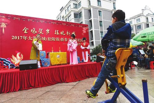 松陵文體站工作人員林穎暉介紹,春節(jié)腳步臨近,為活躍和豐富城鄉(xiāng)居民的精神文化生活,營(yíng)造喜迎接新春的濃厚氛圍,吳江太湖新城開(kāi)展了“金雞賀歲、報(bào)曉新城”迎新春送戲下鄉(xiāng)活動(dòng),從1月16日到1月20日,他們將走進(jìn)梅里村、香江花園、南劉村、八坼敬老院、南厙村等村和社區(qū)開(kāi)展精彩的戲曲專場(chǎng)演出,把歡樂(lè)和笑聲送進(jìn)百姓家門,讓他們品嘗一道道節(jié)日的文化大餐。