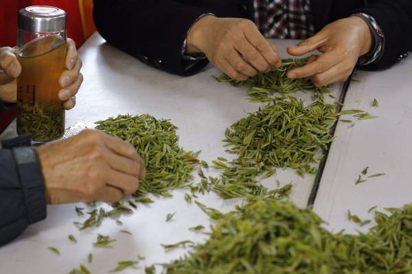 三月底剛好是春茶采摘季節(jié),剛好遇見(jiàn)茶農(nóng)采茶,采摘的是一芽一葉,選茶,
