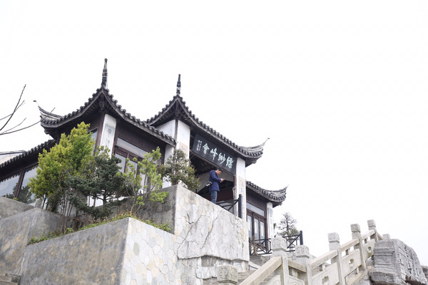 縹緲?lè)逦挥谔K州西山島西部,是西山主峰,海拔337米,為太湖七十二峰之首??~緲?lè)屙斢幸恍嗡弃椬斓木奘峡堂駠?guó)元老李根源題寫的“縹緲?lè)濉比?,附近還有紫云泉、砥泉、仙人桌、登高臺(tái)、望湖亭等遺跡。