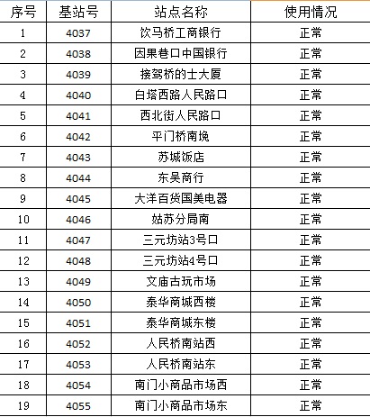 已開(kāi)通19個(gè)站點(diǎn)明細(xì)附表: